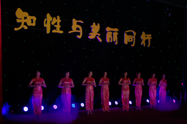 校体育教研部女职工模特队身穿中华服饰文化的代表—旗袍,充分体现了女人的骄傲。她们身材高挑。头颈肩臂腰臀腿以及手足构成了众多曲线巧妙的完美形体,这些在旗袍的衬托之下尽显平素飒爽操场所看不到的贤淑、典雅、温柔、清丽的情愫和气质,在舞台流动的旋律与灯光交相辉映下,浓郁的诗情和潇洒的画意之间体味。旗袍所体现的内外和谐,达到了传统服饰的极致,赢得了全体观众的阵阵喝彩。
