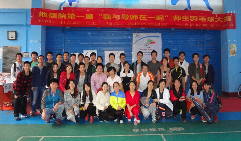 为营造积极、健康、朝气蓬勃的校园运动氛围,促进我院羽毛球体育运动积极向上的发展。2014年11月2日上午,地信院部门工会举办的“我与导师在一起”师生羽毛球大赛,比赛在南校区乒羽馆进行。学院部门工会主席党委书记戴前伟教授,党委副书记李建军教授,副院长刘兴权教授等系所老师参加了比赛。