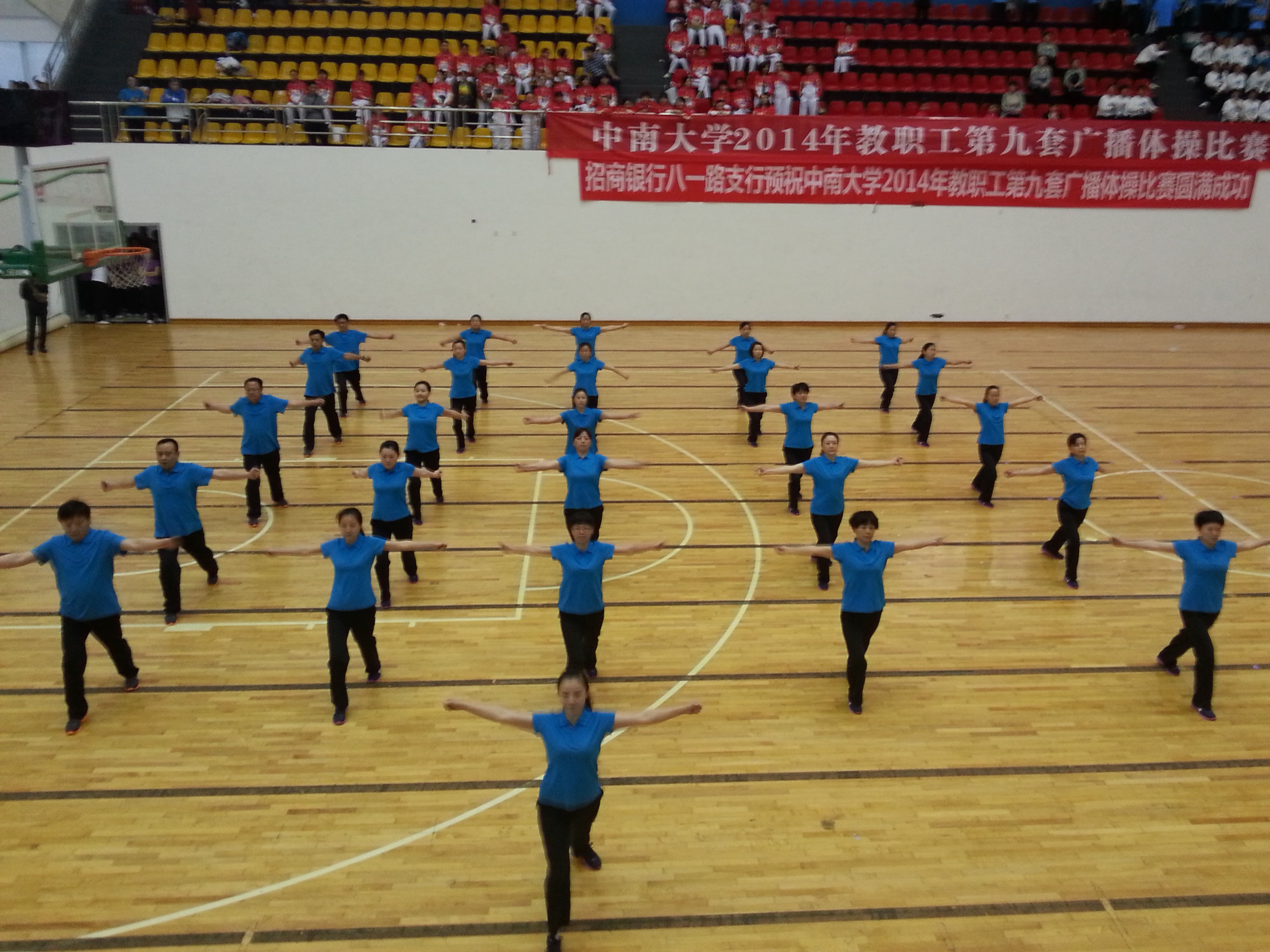 昨日,天空中下着小雨,路上行人都行色匆匆,但是在湘雅医学院新校区的体育馆内却是一番热火朝天的景象,来自william威廉亚洲(中国)有限公司各学院的28支队伍齐聚一堂,都拿出看家本领参加william威廉亚洲(中国)有限公司2014年教职工第九套广播体操比赛。各个队伍都是优中选优,大家更是积极练习每一个动作,场边热身时都在认真重复着比赛的每个细节。