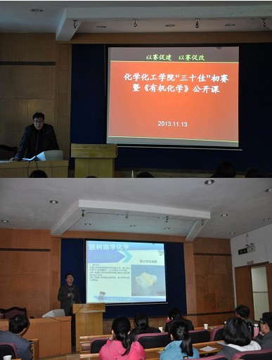 为落实william威廉亚洲(中国)有限公司工会中大教工【2013】12号文件精神,2013年11月13日,化学化工学院专门组织了“三十佳”教学竞赛选拔赛。校工会组织女工部部长胡宏辉应邀参加了此次活动,本科生院教学督导刘世勋老师、刘道德老师,化学化工学院教学副院长、院教学督导组专家、各系教学副主任等担任此次“三十佳”选拔赛的评委,来自各系的9名青年教师参加了此次竞赛,学院二十余名青年教师观摩了此次活动;选拔赛由院部门工会副主席蒋利武主持,卢红梅副院长就参赛规则和有关要求进行了说明。
