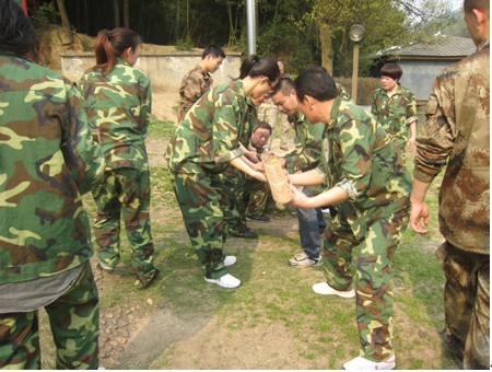 早上9点,全体职工就投入到紧张的拓展准备工作中,换上迷彩服,排好整齐的队伍,每一位参加素质拓展的成员都以昂扬的姿态准备迎接一天的训练。经过主教官的广场训话后,所有队员被随机分成了四组,经过组内讨论,铁鹰队、老虎队、OK队、友谊队应运而生,并精神抖擞,兴致昂扬地展现了自己的队名、队歌和口号。接下来四队两两分队进行了“丛林野战”和“异地传书”拓展训练,队员们在野战中的英勇,传书中的细腻充分展现了我们铁道分公司职工的团结和睿智。