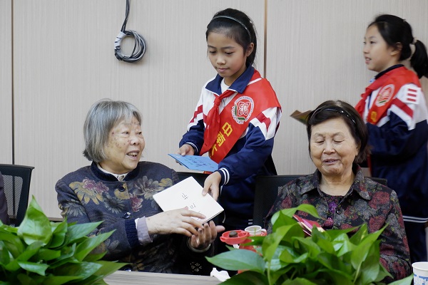 在这个特别的日子里,孩子们也用自己的行动践行着敬老、亲老、爱老的精神。一双小手送上手写的祝福贺卡,退休老师们的脸上洋溢出了幸福的笑容。“你陪我长大,我陪你慢慢变老”,不需要过多的语言,暖暖的亲情在孩子与长辈之间传递,一切尽在不言中。大家合影留念,一张张照片,一片片心意,把老教师的笑容留在了他们曾经工作过的地方。