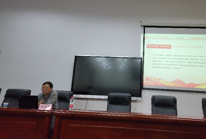 胡岳华常务副校长首先结合学校发展实际重点回顾了中国共产党百年奋斗历程所取得的伟大成就,系统分析了习近平总书记关于“九个必须坚持”重要论述的重要意义,全面解读了习近平总书记在庆祝中国共产党成立100周年大会上重要讲话的深刻内涵,明确指出了教育工作者要沿着习近平总书记“九个必须坚持”指引的道路、方法,开启新征程。
