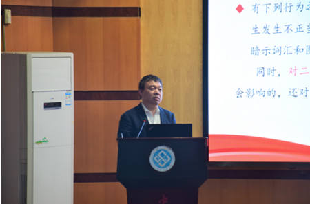 随后,院长高广军向学院全体教职人员传达了学校师德师风专题教育有关文件精神,结合实际案例,围绕《新时代高校教师专业行为十项准则》开展了宣讲学习与警示教育活动。他指出全院教师应严守师德师风,以案为鉴,牢牢树立底线意识,并勉励全体教职人员立德修身、潜心治学,争做“四有”好教师。