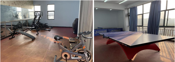 乒乓球室设在外语网络南楼四楼435,配备了乒乓球桌两张;教职工健身房设在外语网络南楼六楼618,配备了椭圆机、甩脂机、甩腰机、动感单车、按摩椅、哑铃凳、仰卧起坐板等运动设备,健身房整体布局简约、空间宽敞明亮,墙镜更是延伸了健身房空间的视觉效果,且方便大家对照镜子健身塑形,矫正动作姿势。在筹建过程中,从场地选择、健身设备挑选、摆放,学校工会领导都进行了精心指导,校工会张思纯副主席一行还亲自到学院现场考察,提出宝贵的建议。为了管好健身房,院工会还制定了《教职工健身房和乒乓球室管理制度》,由学院工会的同志负责日常管理,由指定人员管理钥匙,健身房和乒乓球室面向我院全体教职工开放。