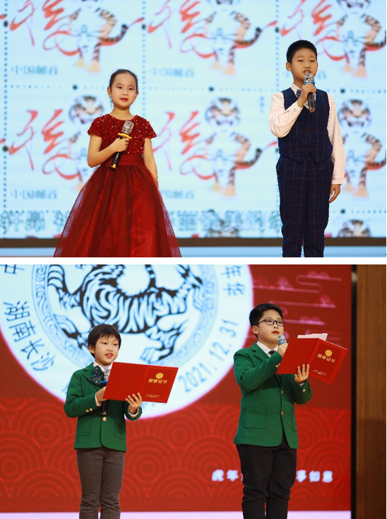 活动现场,麓枫少年邮局的胡瑾瑜、雷凯宁同学激情解说了虎年生肖邮票,赵珩博、石宇轩同学介绍了新年纪念封和邮戳。