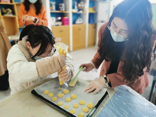 活动现场,学校特邀烘焙特色课程的讲师,为女老师们传授烘焙的制作流程和诀窍。随后,在烘焙讲师的示范和指导下,大家化身“烘焙大师”,一展身手,现场气氛热烈。