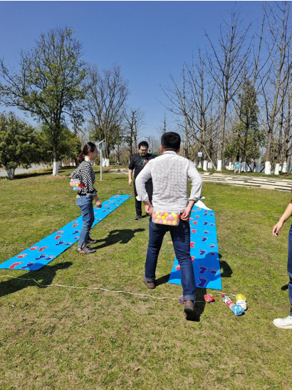 接着,是趣味竞技活动单元,分为手脚并用、沙包投掷、电臀达人、光盘拔河、不倒森林等五个项目。活动趣味十足,大家参与热情高涨。活动开始时,通过抽签的形式,将队员们分为“立德树人队”和“教育强国队”两组,比赛过程中,两组队员纷纷使出使出了十八班武艺,经过紧张的比赛,最终,由教育强国队取得了胜利。