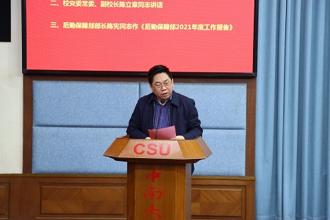 党委书记乔硕功致开幕词。他要求每位后勤员工鼓足干劲,以更优异成绩迎接党的二十大和学校第四次党代会的胜利召开。部长陈宪作了题为《凝心聚力,守正创新,全力以赴促进学校后勤工作高质量发展》的工作报告。报告总结了一年来后勤保障部的工作亮点和不足,围绕优化管理运行机制、持续办好师生实事、加强办学条件改善、深化品牌建设等方面对2022年重点工作进行了安排部署。党委副书记、工会主席康建安作工会工作、部门工会经费使用情况等报告。回顾了部门工会的主要工作和成绩,提出了2022年度工作计划,部门工会将围绕中心工作,继续发挥好职能作用。