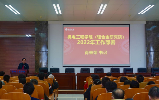 肖来荣书记在大会上对学院2022年工作做了部署。他明确2022年学院将踔厉奋发、狠抓落实。党建工作方面,加强理论学习,提高学院、系所、党支部等各级班子谋划与谋事能力,全面用好“智慧党建”APP;着力加强学院文化建设,进一步健全课程思政教育教学工作的评价机制;擦亮学生工作品牌,重点关注家庭困难生、心理问题生、学习成绩较差生。本科生与研究生教学管理工作方面,要齐心协力完成“机械设计制造及其自动化专业”工程认证,抓住国家级一流本科专业、一流课程建设主线,加快推动教学内容、手段的改革;积极做好学位授权点评估工作;积极参加邓迪国际学院建设,不断提升教师与学生国际视野;全力做好 “机械工程国家级实验教学中心”的评估工作,加快打造数字化能力提升、智能制造云教学、智能制造产教融合、大学生创新创业的众创空间等四大平台。他强调,2022年学院将加大对科研、学科与人才队伍建设扶持力度,促进重大科研团队成员组成与协作机制建设,组建学院青年科协,有组织的推进与省内重点企业(行业)的科研项目与人才培养合作。加大优秀人才引进力度,做好学院教职工岗位聘用相关工作。