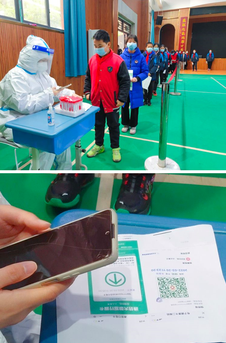全体师生、员工按照要求,根据分批分组安排,按时抵达学校采样点。检测现场,大家自觉佩戴口罩并保持安全距离,在工作人员的引导下分批次进入采样区,井然有序排队等候检测。云麓园党总支吕建武书记亲自督导医务人员工作,指导信息核对录入。医护人员一丝不苟、动作娴熟地进行标本采样,整个过程规范且高效。