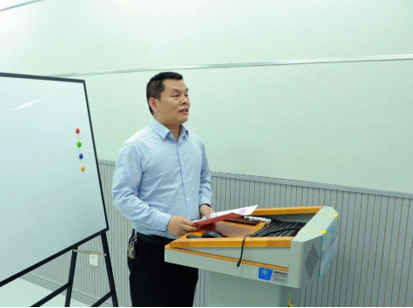 紧接着,学院党委书记贺志军(图9)总结发言。贺书记首先向今天参赛的老师与在场的评委表示感谢,感谢他们对交通院思政工作的支持。之前老师们的思政教案参差不齐,存在很大差距,但今天的思政课程大赛让他眼前一亮。学院下一步的工作计划就是要组建教学团队,进一步完善课程设计,推广有内容有深度的“课程融思政”模式,努力达到更高的课程思政水平,探索交通院特有的教学模式。