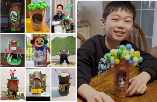 传说中情感树洞是最真实情感的倾诉地,能帮你解决情感烦恼、提供情感帮助、给你最安心的情感呵护,实现你的愿望。为了得到这个“神奇宝贝”,同学们动起手来,用彩泥、超轻粘土等材料制作树洞。各种神奇的“树洞”作品不断涌现,让人叹为观止!同学们在树洞口贴上共同心愿——“疫情快点散去,早日回到学校,见到老师、同学!”