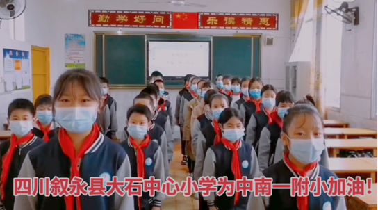 尺素寸心,情意拳拳!远在千里之外的四川叙永大石中心小学的孩子们前几天收到了一附小上周寄出的温情。而此时长沙正处在疫中,同学们宅家上课。大石中心校的老师和同学们给一附小传来了祝福的视屏。视频中,大石的孩子高呼“为长沙加油!为附小加油!”全体师生倍受鼓舞!