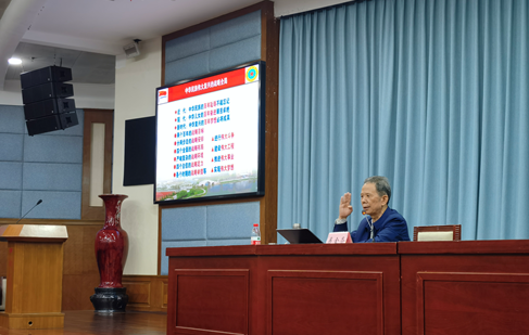 4月21日下午,离退休干部党校在校本部国际报告厅举办“老骥伏枥大讲堂”专题报告会。教育部特聘专家、国防科技大学易金务教授应邀,以《后疫情时代的世界新格局》为题,为全校离退休党支部骨干作了专题讲座。讲座由离退休工作处党委副书记何桂强主持。