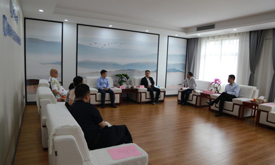 4月26日,湖南省援疆前方指挥部副指挥长、吐鲁番市委组织部副部长林亮亮,援疆指挥部党委委员、纪委书记、工会主席、吐鲁番市纪委常委、监委委员彭晓强,吐鲁番市国资委党委委员、副主任(援疆)贺礼一行来设计院考察指导工作。设计院党支部书记、董事长胡迎新,副院长肖建勇、龙丽及相关部门负责人参加座谈交流。