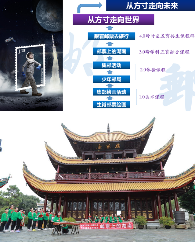没有比人更高的山,没有比脚更长的路。以邮票为载体,以邮学游历为形式的“邮文化”未来课程,展示了信仰在浩浩荡荡的历史潮流中发挥的巨大力量,在学生心中根植下为中华民族伟大事业而奋斗的远大理想。 孩子们带着邮票,开启一次又一次的成长历练,他们行走三湘四水,寻觅湖湘人物足迹,探索文化发展轨迹,以豪情壮志践行“强国有我”的少年担当。