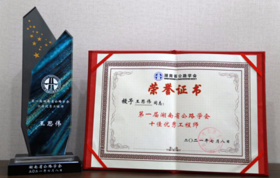 5月30日,湖南省公路学会第八届六次理事会暨2021年学术年会传来喜讯,经会员单位推荐、专家评审、常务理事会讨论通过,决定授予设计院王思伟在内的11名同志“第一届湖南省公路学会十佳优秀工程师”称号。
