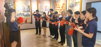 下午,大家来到陈树湘生平事迹陈列室进行参观。陈树湘,曾任中国工农红军第五军团第34师师长,他在完成掩护红军主力和中共中央、中央军委机关抢渡湘江的艰巨任务后虽身陷重围,仍奋勇杀敌,直至重伤被俘。陈树湘宁死不屈,选择了断肠取义,壮烈牺牲,以年轻的生命实现了“为苏维埃新中国流尽最后一滴血”的壮烈誓言。陈树湘烈士断肠明志的革命故事令所有人动容,全体党员肃立,在陈树湘烈士雕像前默哀、鞠躬,缅怀他为民族解放不惧牺牲、顽强战斗的大无畏革命精神。随后,支部党员集体高举右手庄严宣读入党誓词,重温对党忠诚的誓言,永葆本色,砥砺前行。支部书记李英杰同志为党员们送上了政治生日贺卡,勉励支部党员不忘初心,牢记使命,在今后的工作生活中充分发挥党员先锋模范作用。
