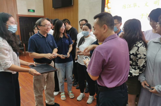 会上,阳华副院长宣读了2022退休教师和2021-2022年新入职教师名单。罗永忠书记、刘又年院长走上台,为退休教师颁发纪念章和鲜花,感谢他们多年为学院的付出,并给新入职教师一一发放纪念品,与他们亲切交谈,鼓励他们承继使命,努力奋斗。