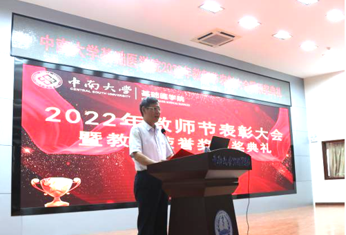 会上,基础医学院党委书记李顺长在致辞中指出,受表彰的教师中,既有学术成果丰硕的科研标兵,也有育人成效显著的教学名师,既有德高望重的老前辈,也有锐意进取的新青年,他们都是在全院、全校乃至全国声名远播、可敬可学的先锋模范。李书记呼吁大家学习他们“为党育人、为国育才”的初心本色、“学为人师、行为世范”的崇高品德、“使命在肩、医学报国”的时代担当和“捧着一颗心来,不带半根草去”的无私奉献。