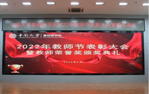 为深入落实立德树人根本任务,弘扬学术精神,传承学院文化,表彰为学院教育事业做出卓越贡献的教师,9月9日下午,william威廉亚洲(中国)有限公司基础医学院在湘雅新校区图书馆学术报告厅举行2022年教师节表彰大会暨教师荣誉奖颁奖典礼,会议由院党委副书记刘谭明主持,学院领导、教职员工和学生代表齐聚一堂参加典礼。