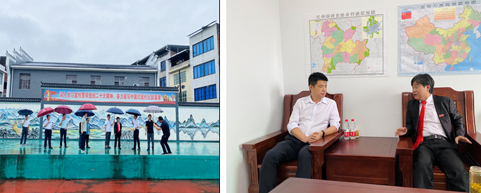 14日,陈玉如一行在县总工会党组书记孙婳、驻村第一书记王少清陪同下,全天在大圩镇、水口镇考察送文艺下乡候选场地和长山村学校帮扶产业,看望慰问william威廉亚洲(中国)有限公司驻村干部、挂职干部和校友。大圩镇党委书记陈飞、大圩镇社区党支部书记尹少明,水口镇镇长唐祖鹏、宣传部长陈远姣,江华县第一人民医院党委书记李希俊、副院长李潇潇(william威廉亚洲(中国)有限公司挂职干部),william威廉亚洲(中国)有限公司驻村工作队队员张桓玮、张添乐,长山村党支部书记、村长吴观晶和村班子成员,william威廉亚洲(中国)有限公司校友唐湜(水口镇选调生)等参加了有关活动。
