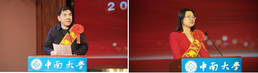 后勤保障部黄智华作为退休职工代表发言。她深情回顾了在学校工作36年间的点点滴滴,让人真切地感受到“知行合一 经世致用”是如何体现在每一位默默耕耘的中南人身上。学校的建设与发展离不开每一个中南人,学校的梦想与光荣属于每一个中南人。