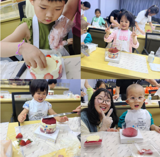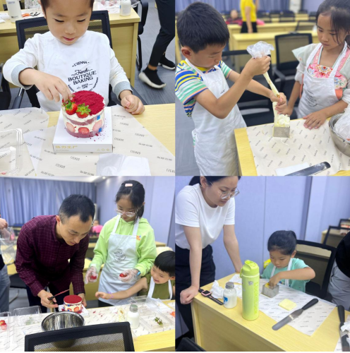 在清香的奶油和甜蜜的水果香味中,孩子和家长们相互协作,充分发挥想象力和创造力,为自己的小蛋糕增添色彩。很快,一个个圆润可爱的蛋糕逐渐成型,孩子和家长们都露出了开心的笑容,活动室内欢声笑语不绝于耳。