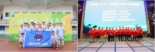 6月22日,21支队伍分别在“本部校区”“铁道校区”“新校区”“湘雅校区”四个校区展开激烈角逐。30余名教职工报名参加,大家在繁忙的工作之余,本着“友谊第一、比赛第二,健康工作50年”的目的与全国各地校友相互交流、相互学习,为实现“文能授业解惑,武能拔脚射门”的目标在绿茵场上挥洒汗水,为学校教职工争得荣誉,也向全国校友展示了中南教职工足球队顽强拼搏、团结向上的精神面貌。