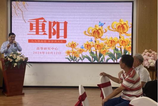 “金秋十月爽,九九话重阳。日月两重归,相映地久长。”2024年10月12日,阳光灿烂、和风习习,高等研究中心工会在盘圣书院开展“龙沙传往事,菊酒对今秋”离退休活动。
