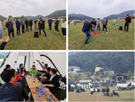 天朗气清,惠风和畅,郊外的露营基地山清水秀,空气清新,行政小组仿佛身处长沙版“阿勒泰”,开启了一场放飞心灵之旅。在团建主持人的号召下,行政小组成员分两队站立集合,开始了丰富多彩的“脑力+体力”团建之旅,进行了“猜拳大脚跑”“闭眼挥棒打”“赶鸭子来回跑”等趣味游戏大比拼,大家纷纷各显身手,在游戏中展现了积极向上、团结协作的精神风貌。老师们在趣味游戏之后,有的准备音响设备,一展歌喉,尽情释放工作和生活的压力;有的进行“狼人杀”桌游,在真相与谎言的碰撞中感受推理的魅力;有的组队扔飞盘,进行了一场体力与技巧的比拼;有的在旷野中放风筝,放飞深秋的梦想;有的一展厨艺,为大家奉献一场烧烤盛宴,为活动增添了一份烟火气息。