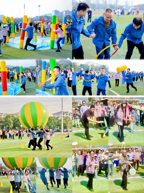 运动会当天,阳光明媚,晴空万里。老师们身着统一服装,早早到达田径场,朝气蓬勃,蓄势待发。此次趣味运动会共设置了鸿运当头、同心协作、屹立不倒、精打细算、趣味飞盘五个项目,既要比拼个人技巧,也需考验团队协作能力。老师们斗志昂扬,纷纷化身运动健将,在学院党委书记王新平和院党委副书记、工会主席彭春丽的带领下,齐心协力为学院荣誉而战。场上队员们争分夺秒,奋勇拼搏;场下观众们出谋划策,呐喊助威,为赛场增添了无尽的激情与活力。整个运动会现场充满了欢声笑语,老师们不仅锻炼了身体,还收获了满满的快乐和友谊。