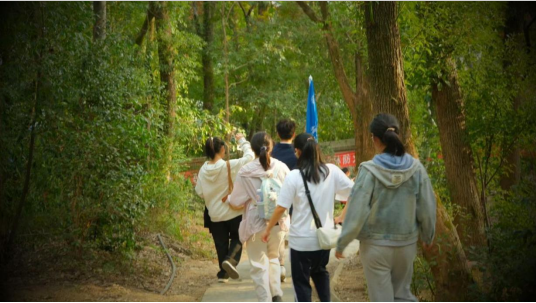 出发前,2024级本科生辅导员刘滨睿老师强调了活动的安全注意事项和行程安排,确保登山过程的顺利进行。登山过程中,师生们沿着岳麓山蜿蜒的山路拾级而上。秋日的岳麓山植被繁茂,大家一边欣赏着沿途的自然风光,感受深秋山林的斑斓色彩与宁静氛围,一边热烈地交流着学习与生活中的点滴趣事。欢声笑语此起彼伏,回荡在山间。