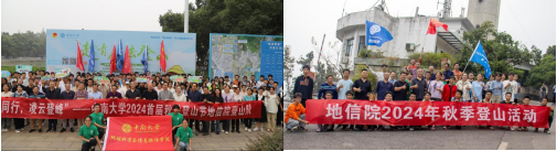 学院党委书记邵拥军、党委副书记刘浩、地质工程系主任孙平贺、地理信息系主任李海峰、测绘与遥感科学系主任杨泽发、地质资源系博士生支部书记熊伊曲、团委书记刘琦、学院各系所教师携手学院广大同学积极参加本次登山活动。学院师生通过集体登山与个人登山两种方式在活动期间登山打卡、磨练身心、强健体魄。