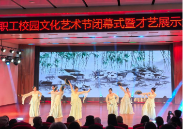 《青花瓷》这支舞蹈,巧妙地将中国古典舞的雅致与爵士舞的灵动相融合,既保留了传统文化底蕴,又不失现代时尚气息。舞台上,我院教职工们身着汉服,手执折扇,随着轻快而富有节奏感的音乐翩翩起舞,每一个动作展现出古典韵味与现代节奏的和谐共生之美。尽管参演教职工并非专业舞者,但她们流畅有力的动作充分彰显了舞蹈的魅力,赢得了现场观众的热烈掌声。