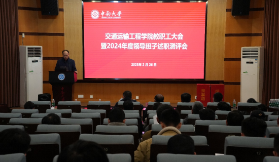 2月26日下午,交通运输工程学院于天心校区国际报告厅召开全体教职工大会暨2024年度领导班子述职测评会,全体学院领导、教职工参加会议。会议由党委副书记李苑主持。