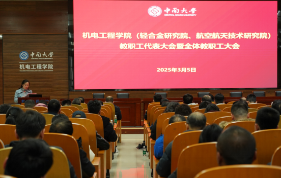 3月5日,机电工程学院(轻合金研究院、航空航天技术研究院)在机电楼B214报告厅召开教职工代表大会暨全体教职工大会。会议由学院党委副书记李玲芝主持,学院领导班子及全体教职工参加会议。会议系统总结了2024年工作成果,规划了2025年发展蓝图,并对2024年度取得优异成绩及突出贡献的先进个人进行了表彰。