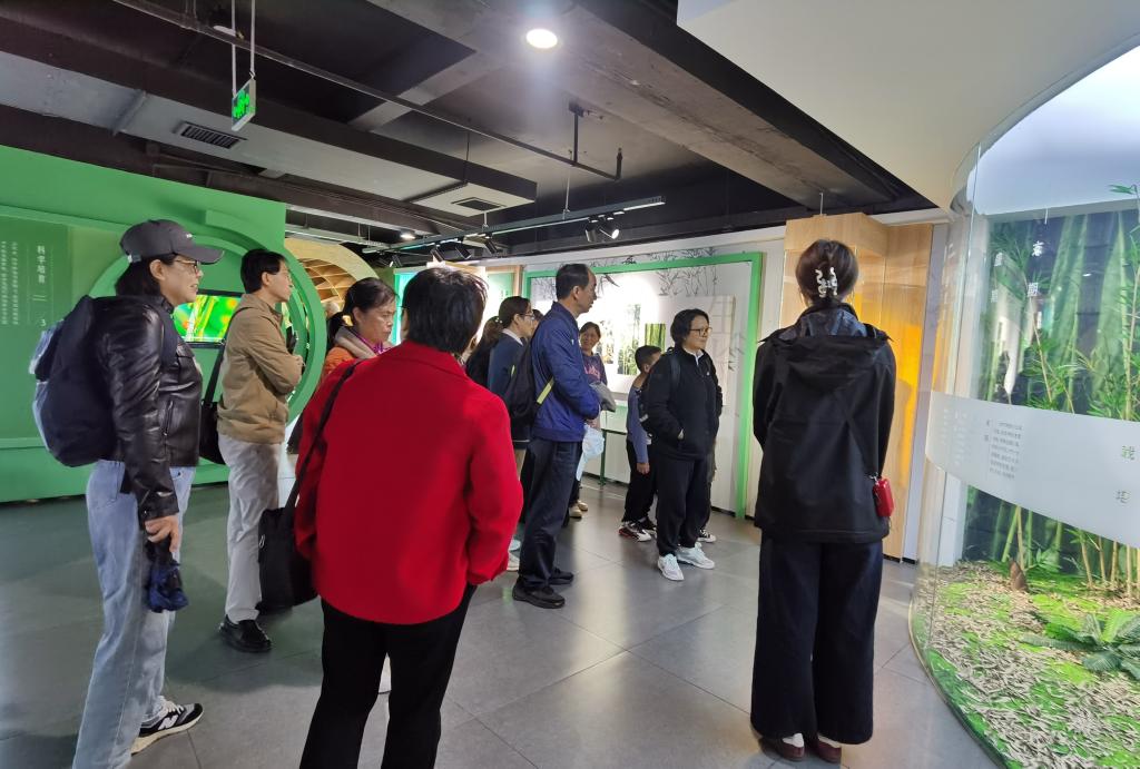 步入被誉为“南竹大观园”的万亩竹林,大家沉醉于挺拔的楠竹、轻拂的春风、新鲜的空气中。在湖南首座竹文化主题展馆内,4800平方米的陈设空间以“一竹一世界”的哲思,铺陈出从《诗经》“伐竹荷担”的劳作智慧到东坡“不可居无竹”的精神境界。“竹之源、竹之韵、竹之用、竹之魂、竹之梦”五大展区系统呈现竹的生态价值、人文精神与产业智慧,成为解读中华竹文化的“活态百科全书”。在导游的讲解下,老师们深入了解竹文化,体验自然人文。