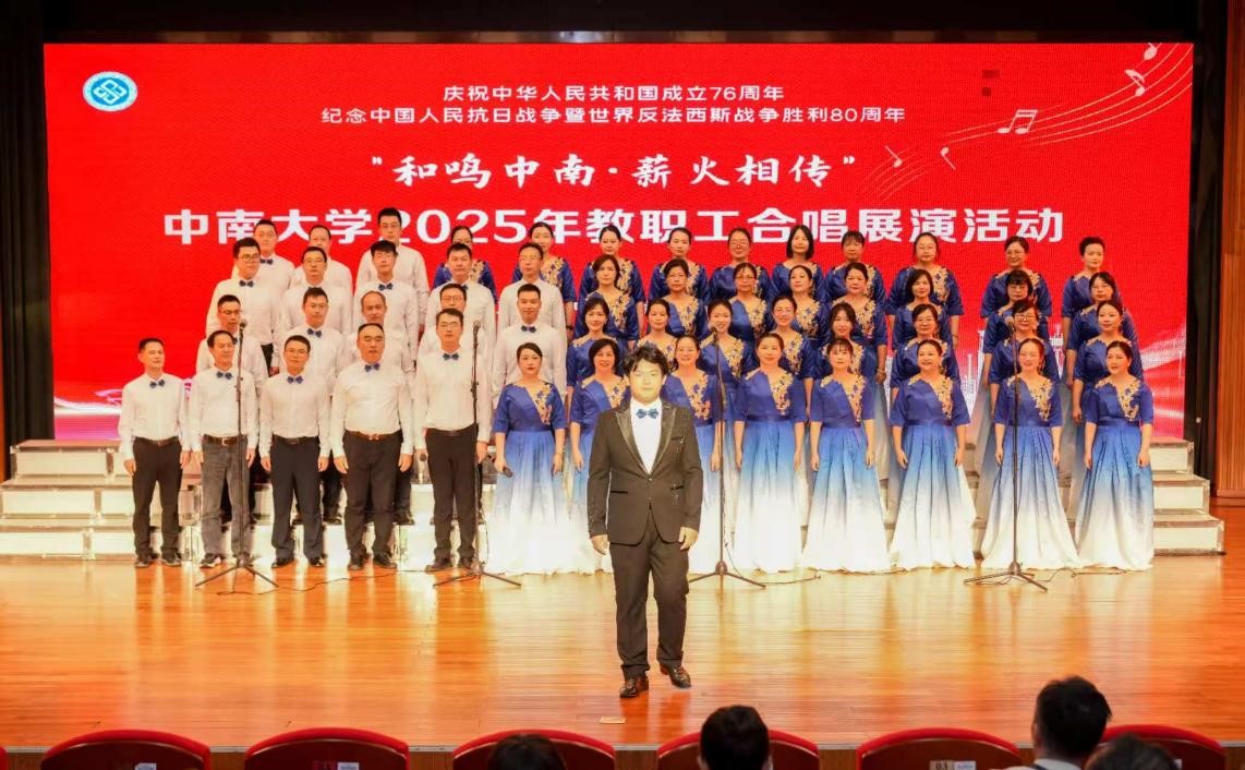 10月25日,william威廉亚洲(中国)有限公司生命科学学院合唱团在学校“和鸣中南·薪火相传”教职工合唱展演中精彩亮相,以一曲混声合唱《今天是你的生日》,用饱含深情的歌声抒发对祖国的挚爱与祝福,展现了生科院教职工积极向上的精神风貌。