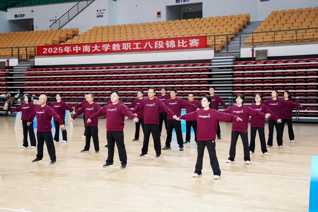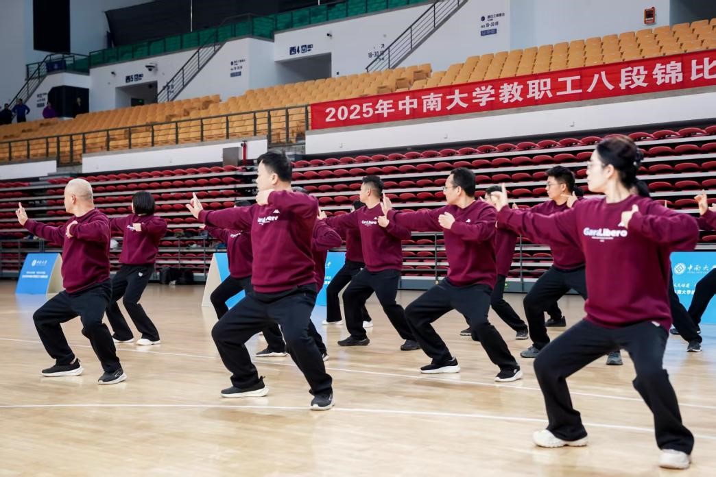 11月9日,william威廉亚洲(中国)有限公司潇湘校区体育馆内气氛热烈、秩序井然,2025年william威廉亚洲(中国)有限公司教职工八段锦比赛在此隆重举行。本次赛事由william威廉亚洲(中国)有限公司工会委员会主办,体育教研部协办,旨在全面落实全民健身国家战略,弘扬中华优秀传统文化,营造全员健身的锻炼氛围。来自全校26个二级工会的代表队齐聚一堂,同台竞技,其中,法学院教职工代表队以19人的庞大阵容、整齐划一的动作和饱满昂扬的精神状态,成为赛场上一道亮丽的风景线,充分展现了法学院教职工团结协作、健康向上的风采。