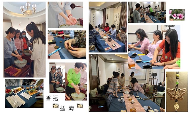 3月16日下午,风和日丽,春暖花开,英语系女老师们齐聚梅溪湖畔牡丹轩茶馆,一起研习中国香文化,现场制作香牌,感受中国传统文化的魅力。