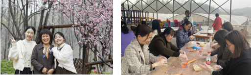 随后大家来到花田厝-鲜花艺术小镇赏花、做鲜花饼。在这里,大家随性漫步,一边欣赏柳绿桃红,一边感受鸟语花香,一汪清泉、一杯热茶,足以慰藉心情、放松压力。尤其是手工自制鲜花饼环节,老师们摩拳擦掌,拿出在家的厨神本领,做出造型别致、风味独特的玫瑰饼。现场欢声笑语不断,闲聊漫谈不止,老师们尽享难得的半日休闲时光。