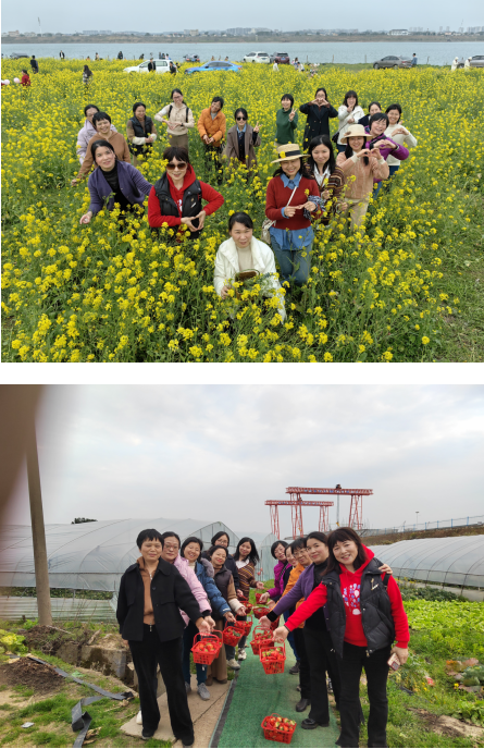 美丽的湘江之畔,位于鹅洲岛的千亩油菜花竞相开放,在柔和的春风中连绵起伏,宛如一片金黄的海洋,放眼望去,美不胜收。老师们或三五成群,或欢声笑语,在油菜花海中流连徘徊,“摄影大师”纷纷拿起手中的相机抓拍这无限春光与美好瞬间,忘却工作和生活的烦恼,尽情享受悠闲的田园风光。此外,部门工会还组织了草莓采摘活动,在草莓种植棚里,大家一边品尝美味的草莓,一边闲聊家常,现场气氛轻松愉悦、其乐融融。