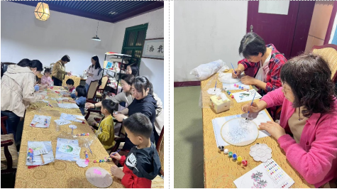 浅游古镇后,大家来到了一个特别的场所——春之拓印工作室。在这里,女职工们亲手体验了团扇手绘,用色彩和线条在团扇上留下春天的印记。这不仅是一次艺术创作,更是一次对传统文化的传承和尊重。
