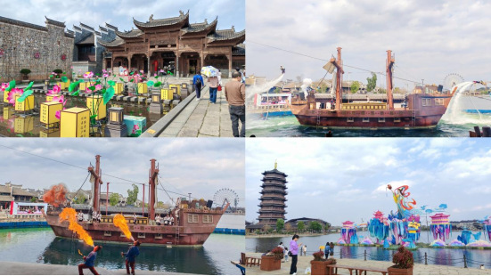 移步花鼓戏楼,一场原汁原味的湖湘戏曲盛宴正在上演。演员们以俏皮的风格演绎经典剧目,将湖南人“吃得苦、霸得蛮”的精神演绎得淋漓尽致,女职工们无不感叹非遗文化的鲜活生命力。下午的黑石号特技表演以唐代沉船“黑石号”为原型,演员们在水面上演绎高难度跳水、摩托艇特技与古代海战场景,配合全息投影与烟火特效,不仅令人感受到“火流星”入水瞬间的壮美,更在水花飞溅中读懂了湖湘人敢闯敢拼的开拓精神。