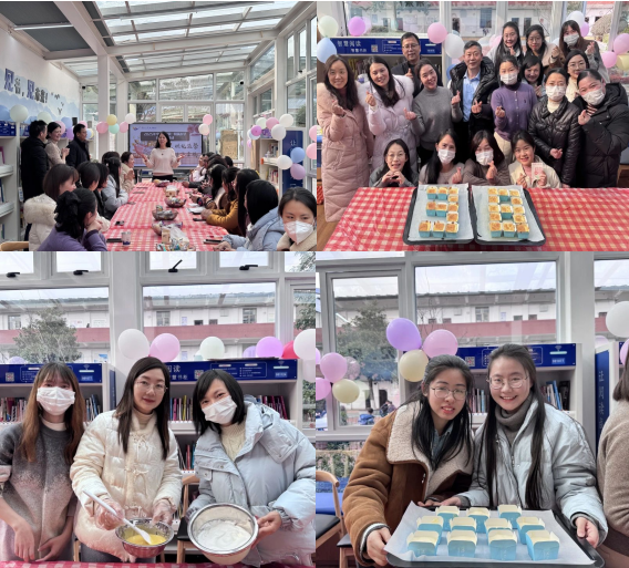 午后,活动场地移至布置得温馨雅致的见山书舍。在这里,丁校长再次送上对女教师们的美好祝福,愿她们如同春日里肆意绽放的繁花,娇艳妩媚且芬芳四溢。学校工会邀请了专业烘焙老师带领老师们制作蛋糕,老师们纷纷动手,全身心沉浸在烘焙带来的乐趣之中。现场欢声笑语此起彼伏,氛围温馨且融洽。当看到自己亲手制作的甜品新鲜出炉时,教师们的脸上洋溢着满足与喜悦,那笑容仿佛春日里最灿烂的阳光。
