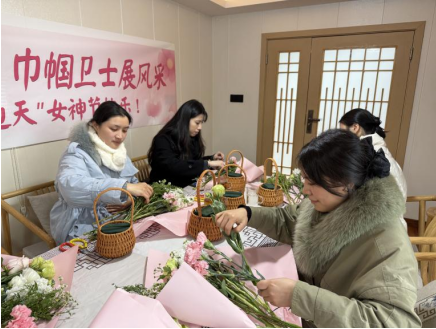 在专业花艺师的指导下,女职工们发挥创意,将玫瑰、康乃馨等花材巧妙搭配,创作出各具特色的插花作品。活动现场欢声笑语不断,大家互相交流技巧、分享感悟,既感受了传统花艺之美,也在忙碌的工作之余放松身心。