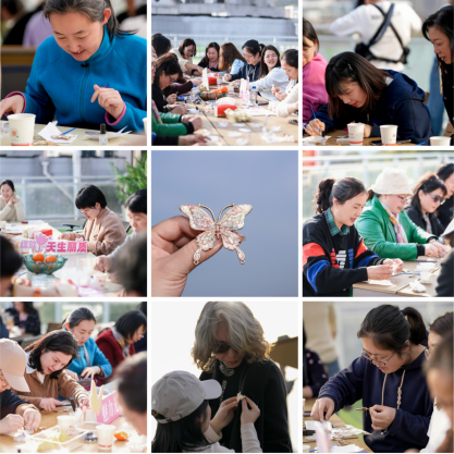 在特步俱乐部露台上,另一场关于技艺与美的对话正在上演。结合学院工程实践创新中心的特色课程,女职工们在指导老师的带领下,亲手制作螺钿DIY非遗贝壳胸针。从挑选胸针形状到镶嵌贝壳,每一步都凝聚着对传统工艺的敬畏与创新思考。活动中,大家相互欣赏、相互鼓励,传达着对美的感知和理解。经过1个多小时的努力,当一枚枚镶嵌着璀璨螺钿的胸针完美呈现时,现场响起阵阵掌声。参与者纷纷表示,这场活动不仅是一次手工艺的探索,更是一场跨越年龄与岗位的情感联结,大家在交流协作中感受到团队温暖,也在创作成果中收获了满满的成就感。