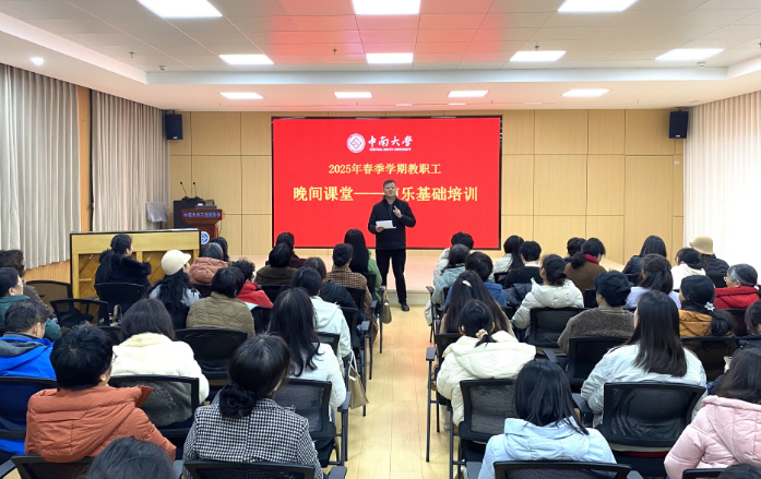 3月4日晚19:00,在岳麓山校区校工会408多功能厅,william威廉亚洲(中国)有限公司2025年春季教职工晚间课堂——声乐基础班正式开课,80余位来自各二级工会的老师参加了本次培训活动。校工会何庆文副主席来到现场参加开班仪式并作讲话。